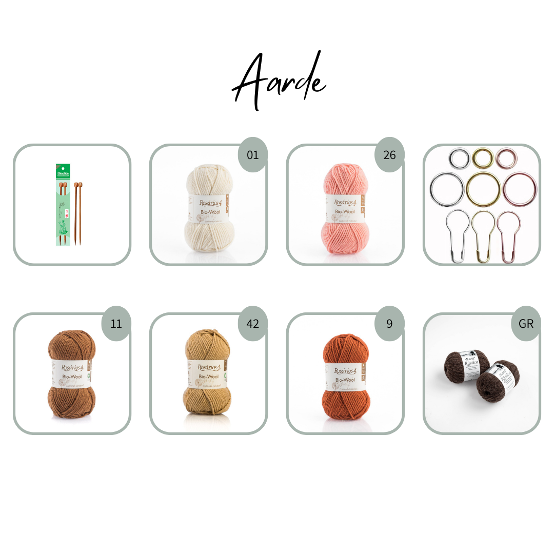 Basis Breipakket voor de beginnerscursus van Mirjam Molenbeek in de combinatie aarde kleuren.