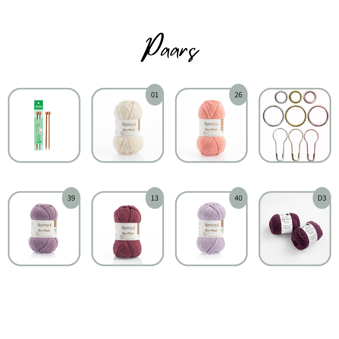 Basis Breipakket voor de beginnerscursus van Mirjam Molenbeek in de combinatie paars.