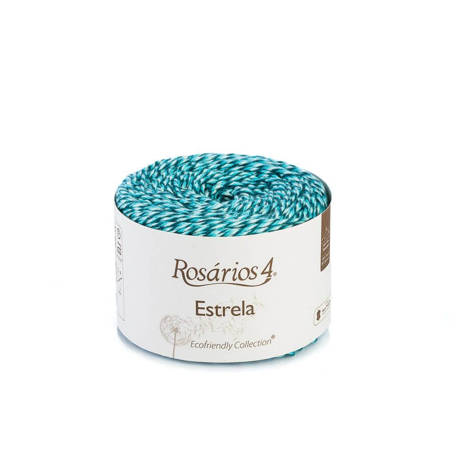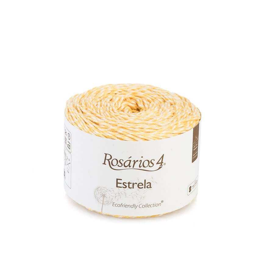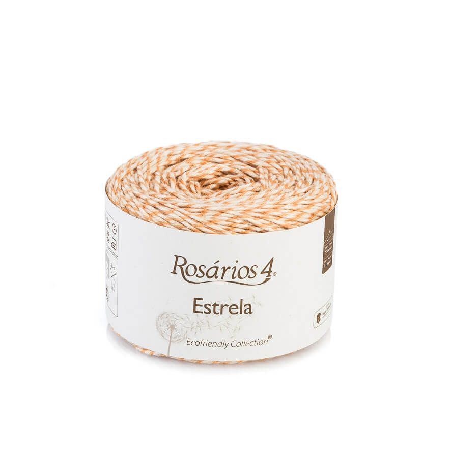 Rosários 4 Estrela is 100% vegan certified cotton. It consists of 3 colours with a common base giving the final result a vivid, never dull colour. suitable for clothing, toys, amigurumis or home decorations.