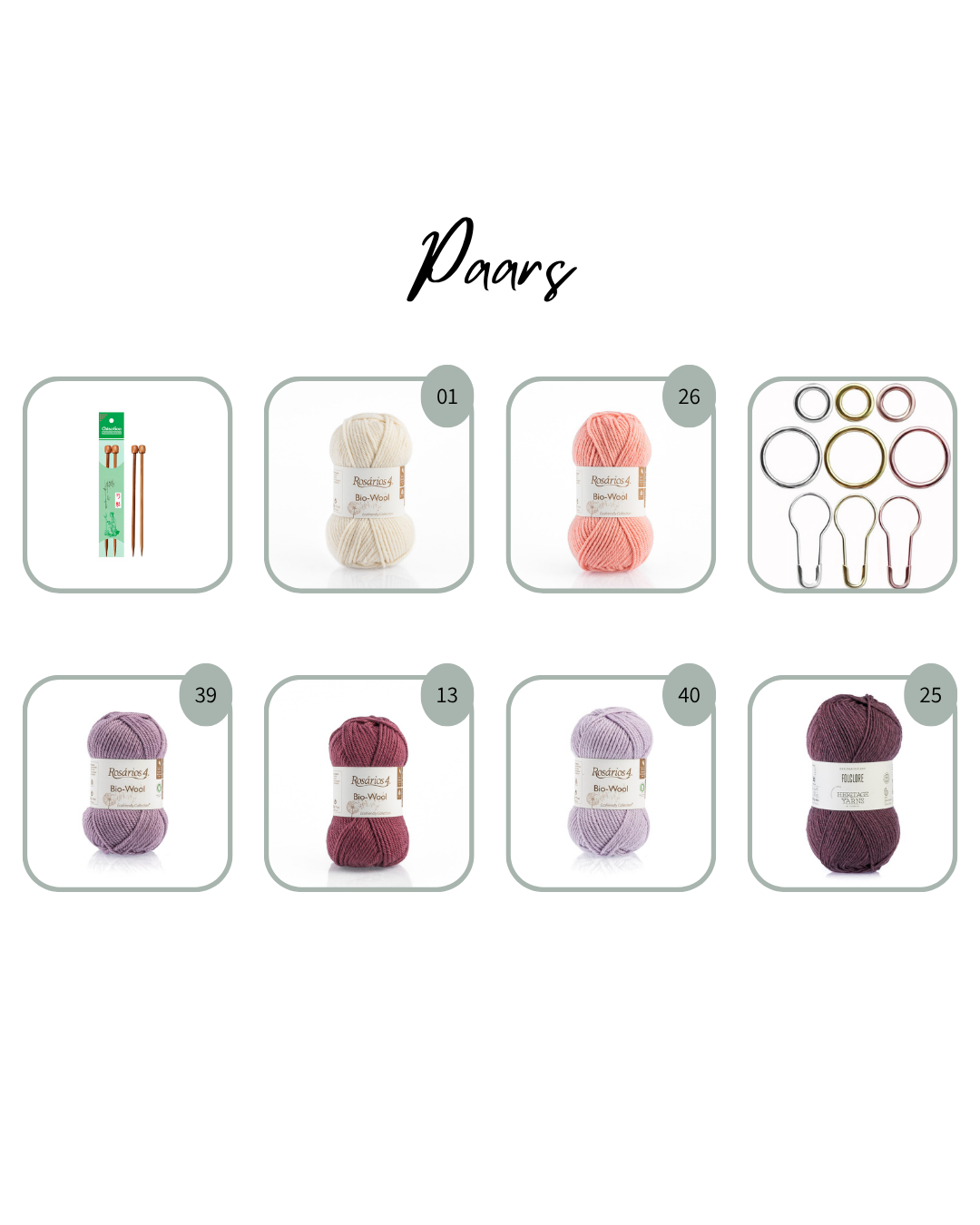 Basis Breipakket voor de beginnerscursus van Mirjam Molenbeek in de combinatie paars.